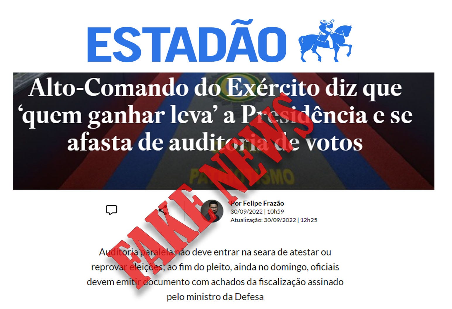 Em 2022, horas antes do primeiro turno das eleições, o Exército veio a público de maneira um tanto inacreditável para desmentir uma notícia veiculada na mídia corporativa: pondo uma tarja de “fake news” na informação dada pelo Estadão de que o Alto-Comando da Força respeitaria o resultado da eleição para a Presidência da República.